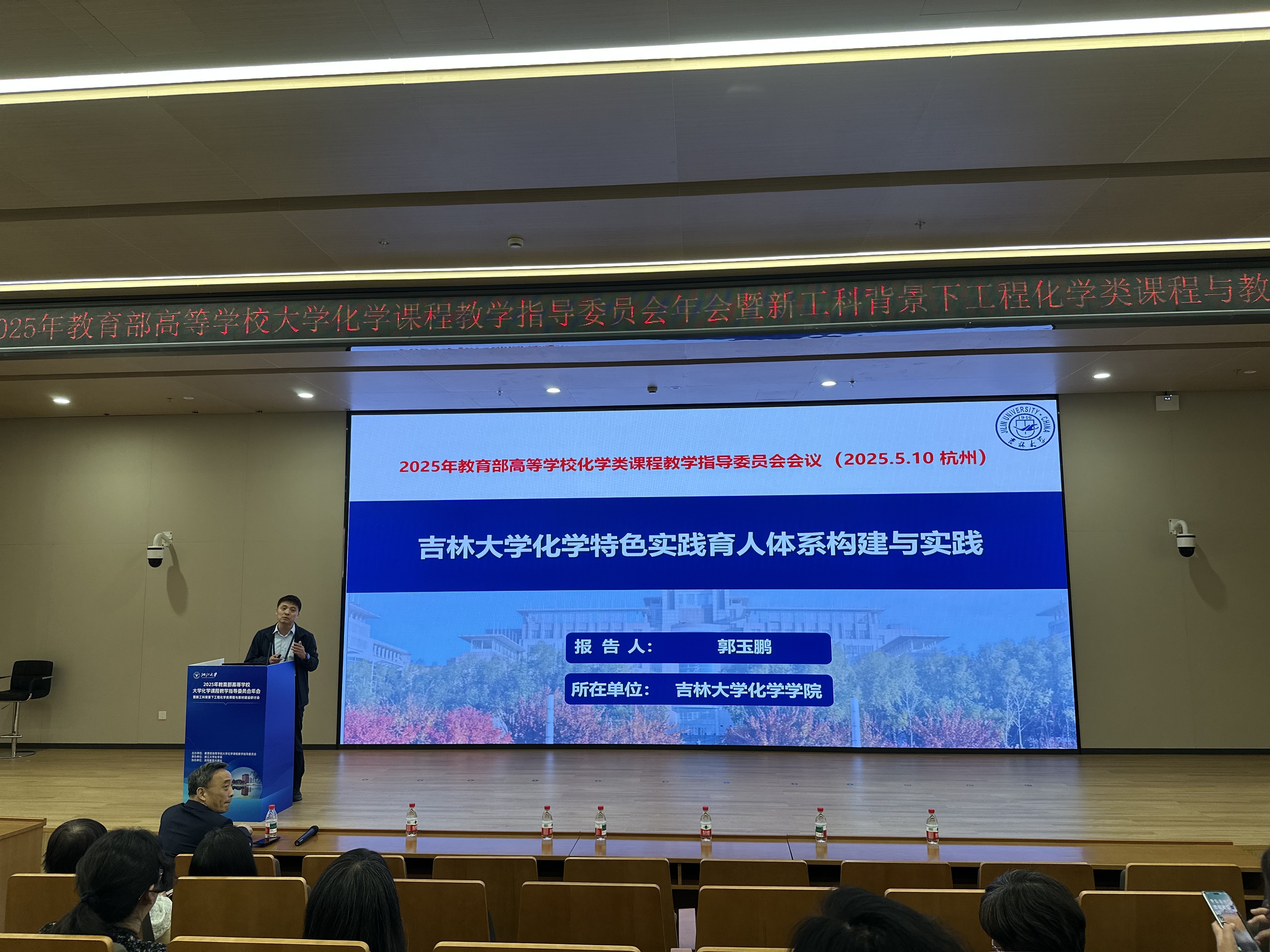 2025年5月10日,“2025年教育部高等学校大学化学课程教学指导委员会年会暨新工科背景下工程化学类课程与教材建设研讨会”在浙江大学紫金港校区召开,郭玉鹏教授受邀参会并作大会报告。