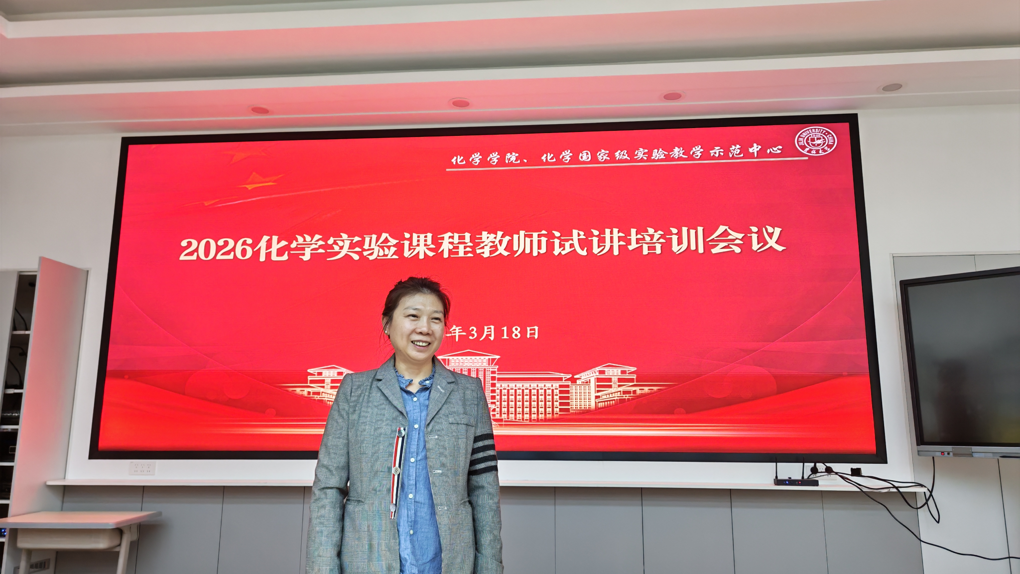 2026年3月18日13:30,化学国家级实验教学示范中心(吉林大学)在张雷教授的主持下,召开了2026年化学实验课程教师的试讲培训会议。会议旨在通过试讲点评与经验分享,提升实验课教学质量与教师授课能力。邹晓新教授、刘钢教授、张薇教授、李政正高级工程师、季桂娟教授、齐菊锐教授等专家出席,尹秀秀、陶淞源、高慧敏、刘娜、段雪梅五位教师参与试讲展示。
